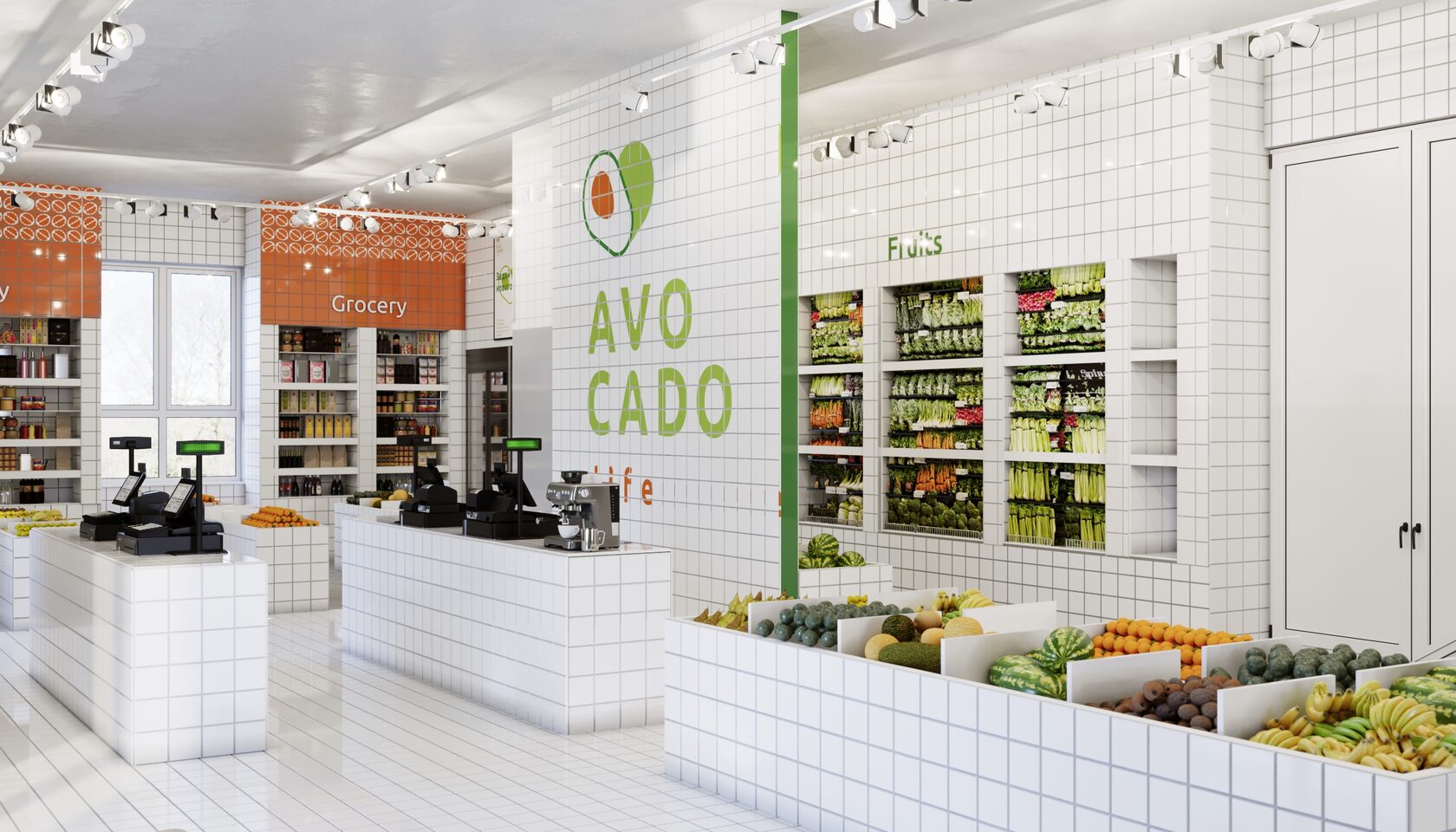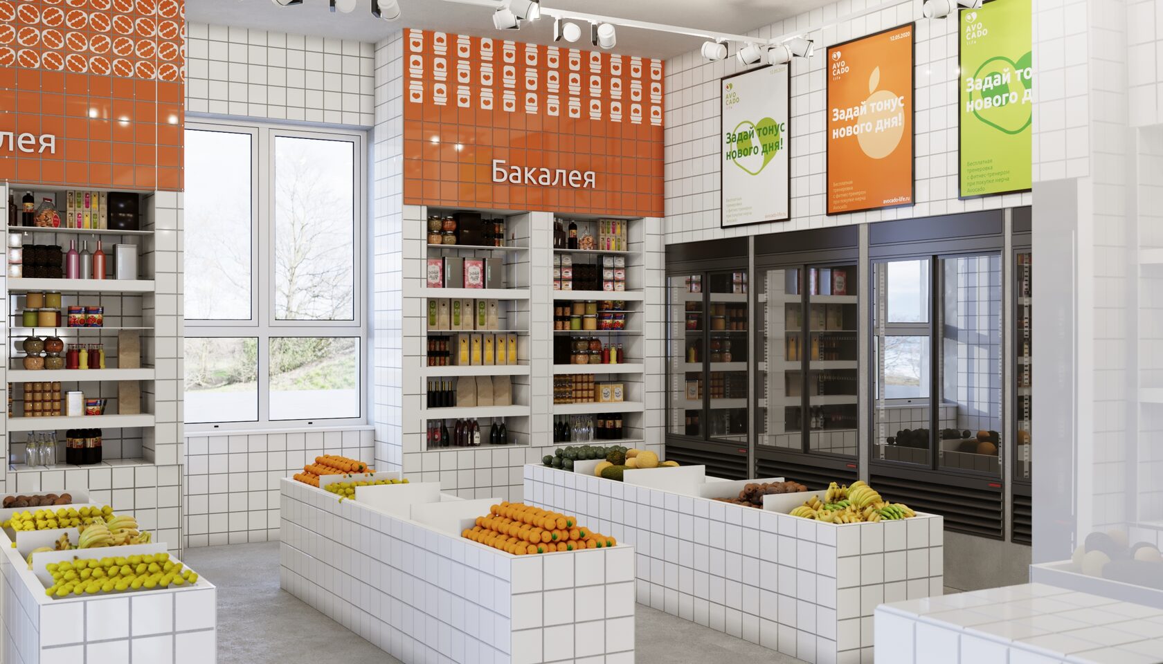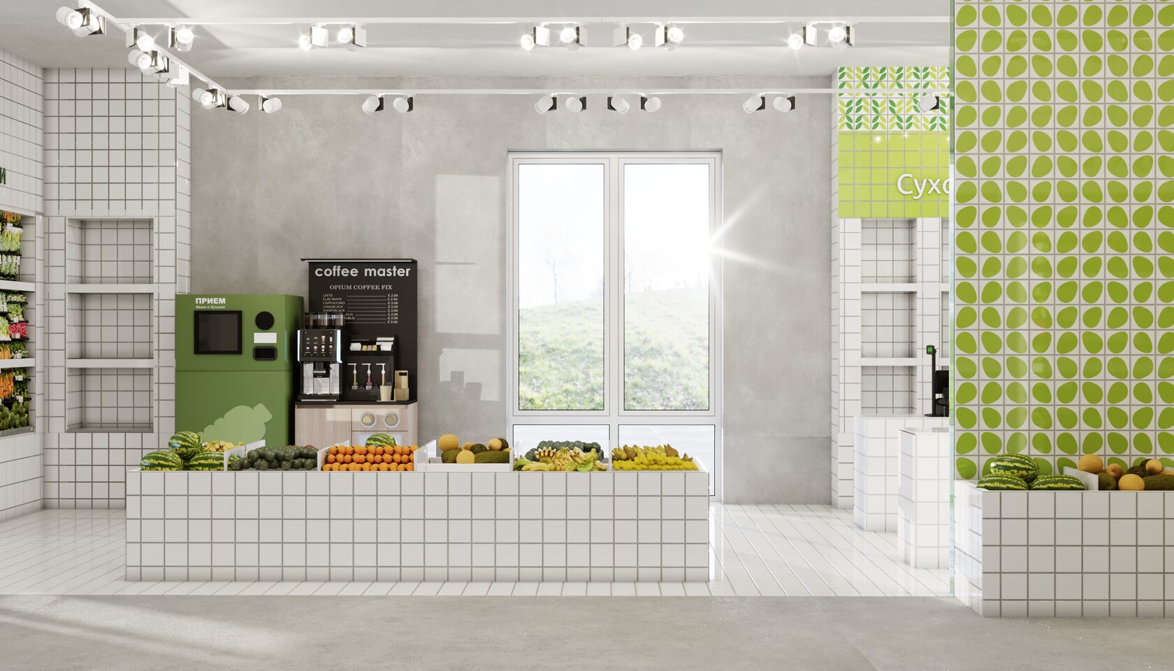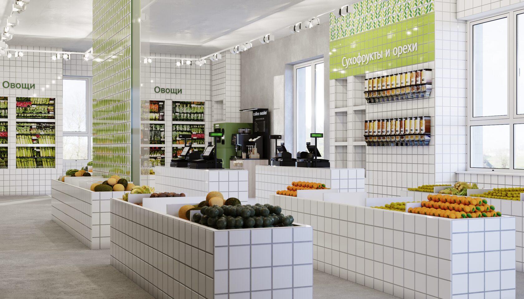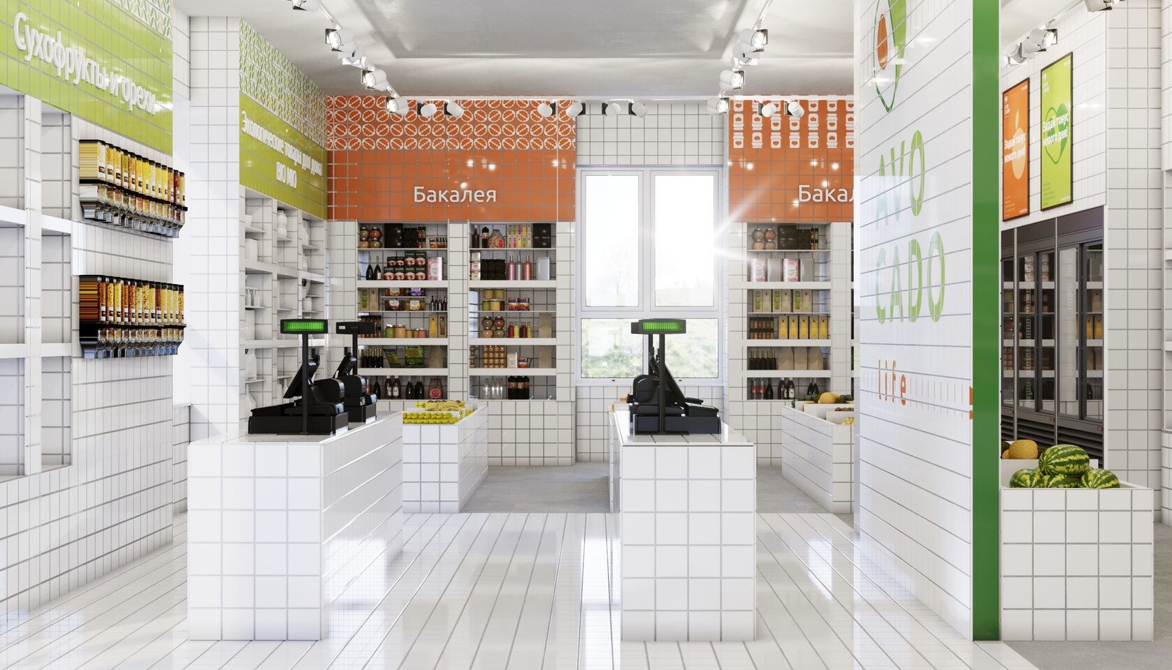 Разработали логотип и айдентику, которую можно гибко применять для различной упаковки и сувенирной продукции. В основе стиля дизайн-система нео-гео. В рамках этой системы каждый смысловой элемент размещается в своей квадратной ячейке — отсылка к зонированию в магазине: бакалея, орехи, свежие фрукты и овощи и т.д.