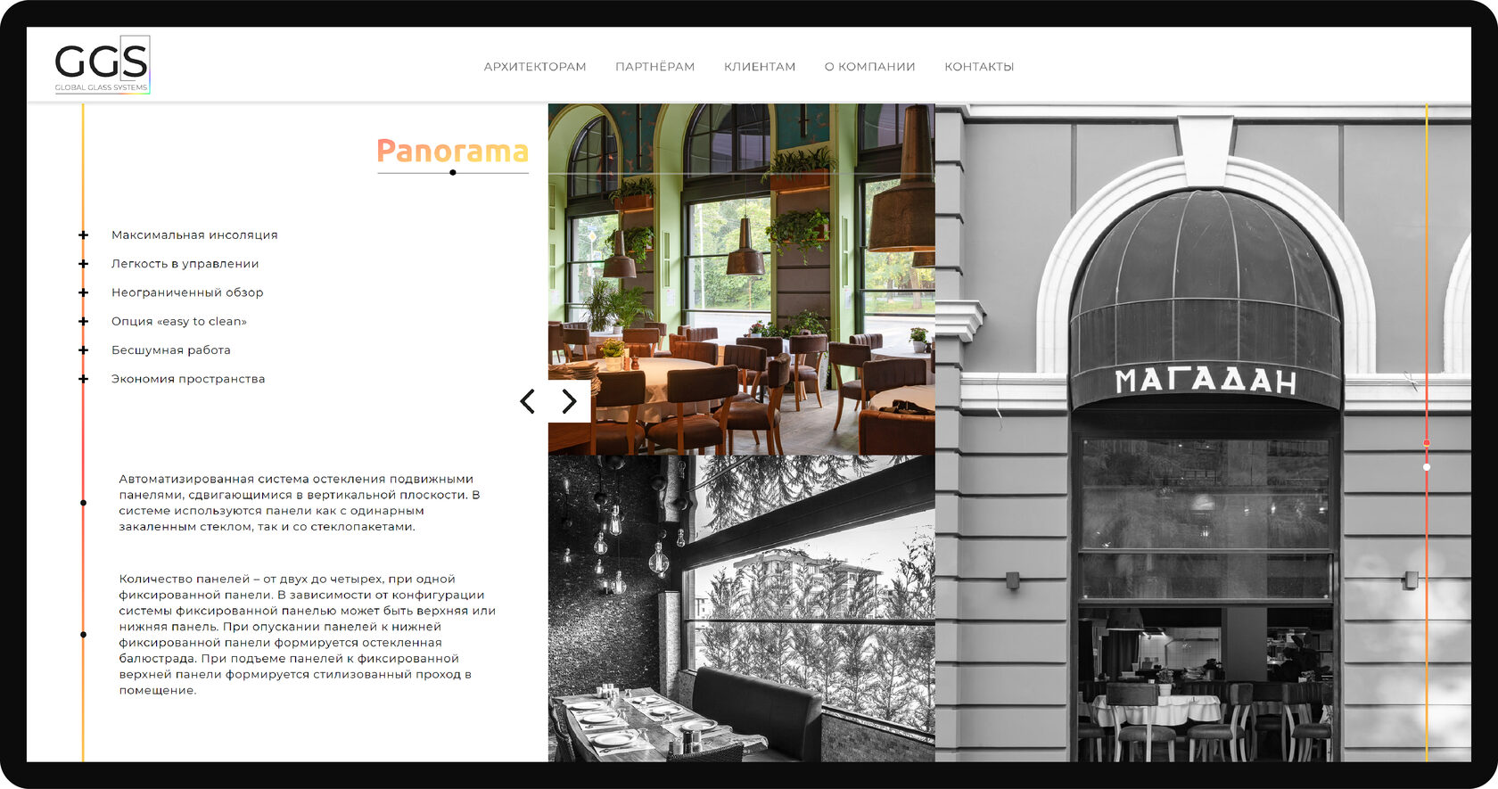 Разработан для компании Global Glass System, которая занимается коммерческим и частным остеклением любой сложности. Сайт выполнен в современном стиле, с использованием активных графических элементов для воплощения футуристичного вида.