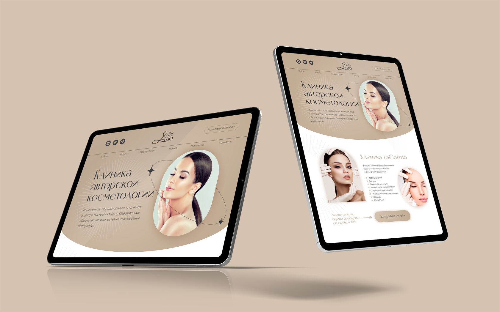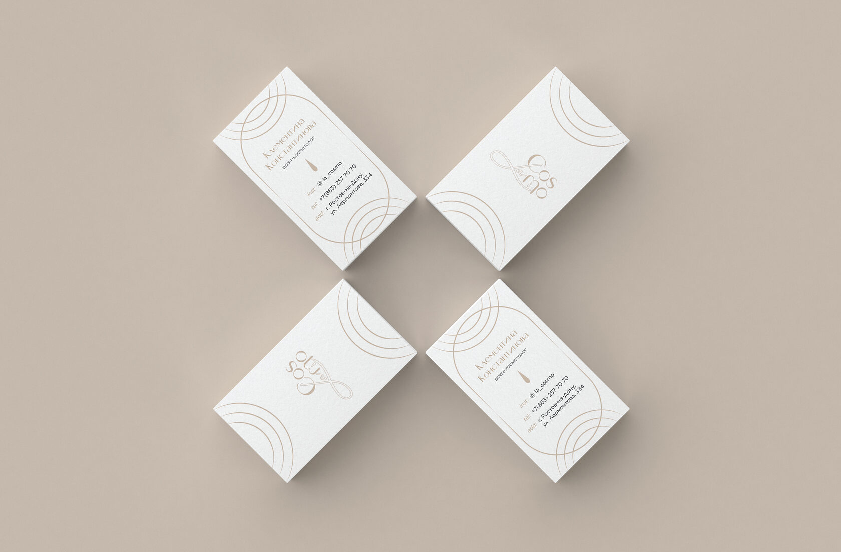 Дополнительно стиль клиники отражает тему античности, чтобы подчеркнуть преемственность идеалов красоты и естественность способов омоложения. Для этого в дизайне мы использовали природные песочные оттенки. Фирменным шрифтом взяли современную антикву, т.к. шрифт с засечками подчеркивает историчность концепции.