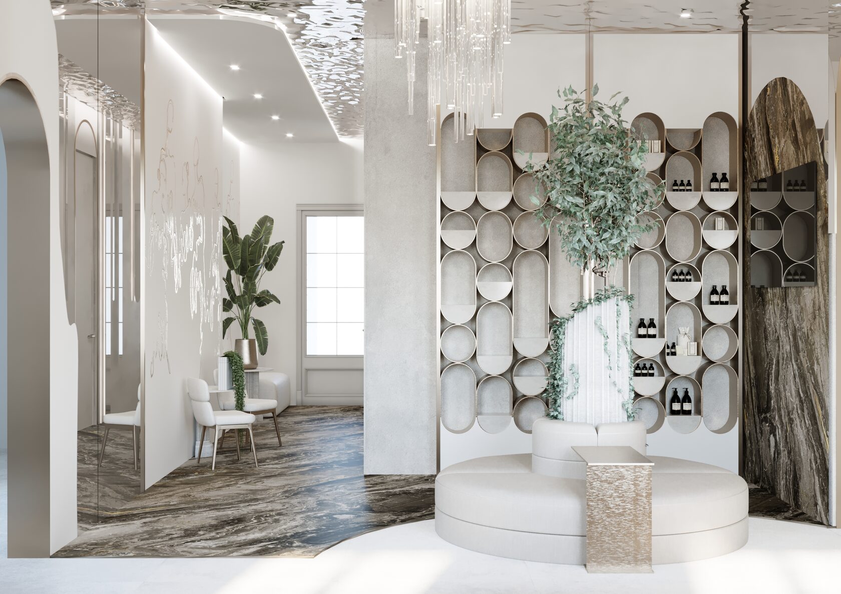 Концепция фирменного стиля клиники построена на метафоре воды. Вода представлена как символ молодости и здоровья. Графически мы передали метафору с помощью плавных, органических форм в логотипе и фирменной графике.