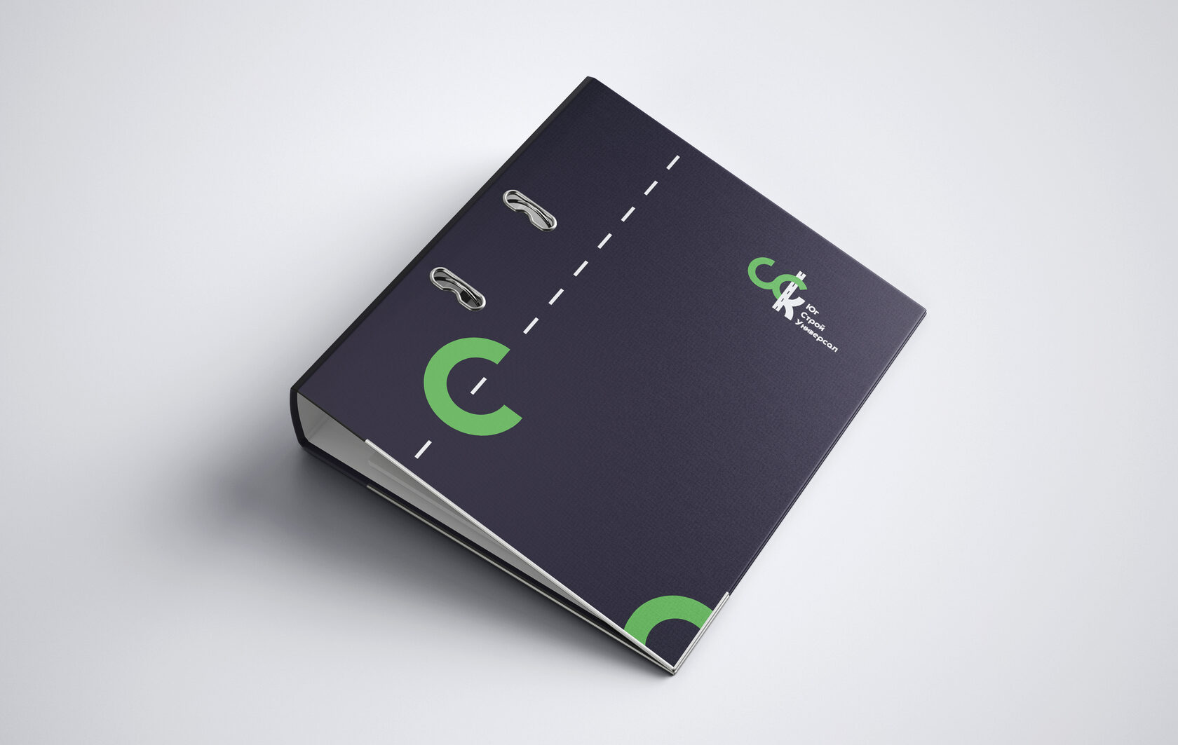 Фирменный знак — это шрифтовая композиция из аббревиатуры ССК (сметно-строительная компания). Знак стилизован под уровни городского ландшафта, которые взаимодействуют друг с другом. Передача смысла усиливается пунктирной линией на букве «К» — отсылка к дорожной полосе.