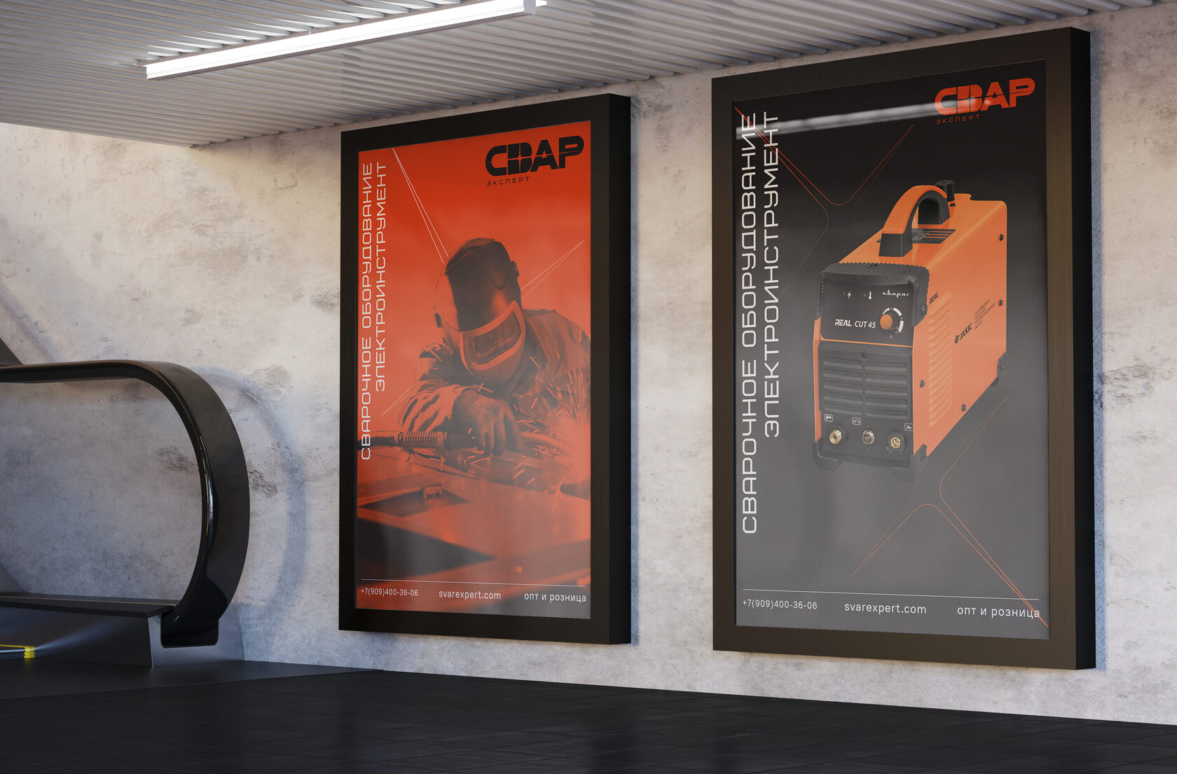 Логотип магазина — шрифтовая композиция, в основе которой современная геометричная гарнитура, которая подчеркивает технологичность направления. В шрифтовую композицию вписана форма искры — основного атрибута сварочного процесса. Сама искра масштабируется и используется на различных макетах как самостоятельный графический элемент.